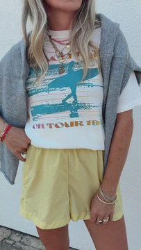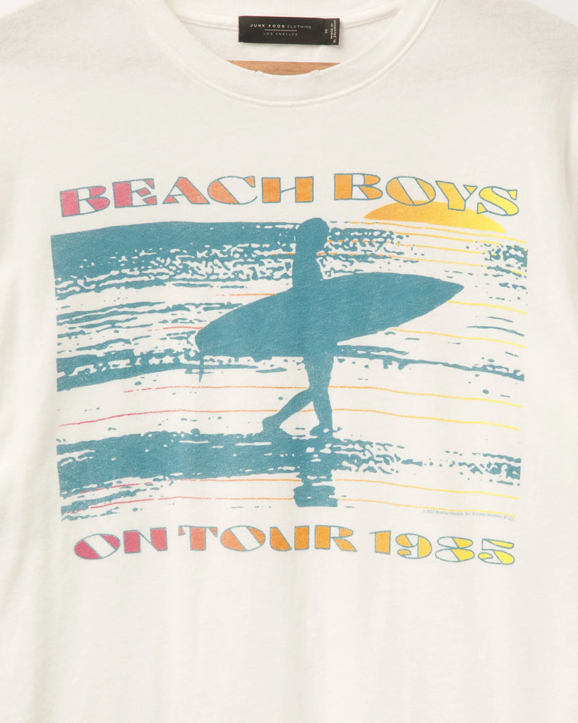 Ride the wave of nostalgia with this vintage inspired The Beach Boys On Tour 1985 Vintage Tee. Featuring a faded surf graphic and retro rainbow lettering, it's soft, laid-back, and sun-drenched in all the right ways. Perfect for beach days, road trips, or just good vibrations.