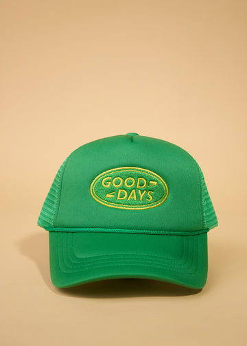 Classic Good Days Trucker Hat with oval embroidered logo.