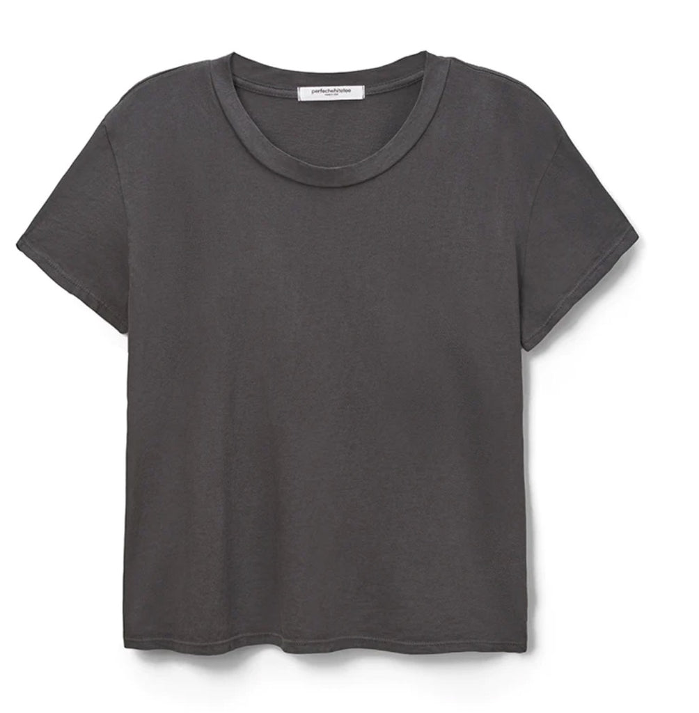 The perfect, slightly-oversized crew neck tee. the essential staple piece you will want to live in. hits just below mid-rise denim. get a few, they will be forever your favorite.