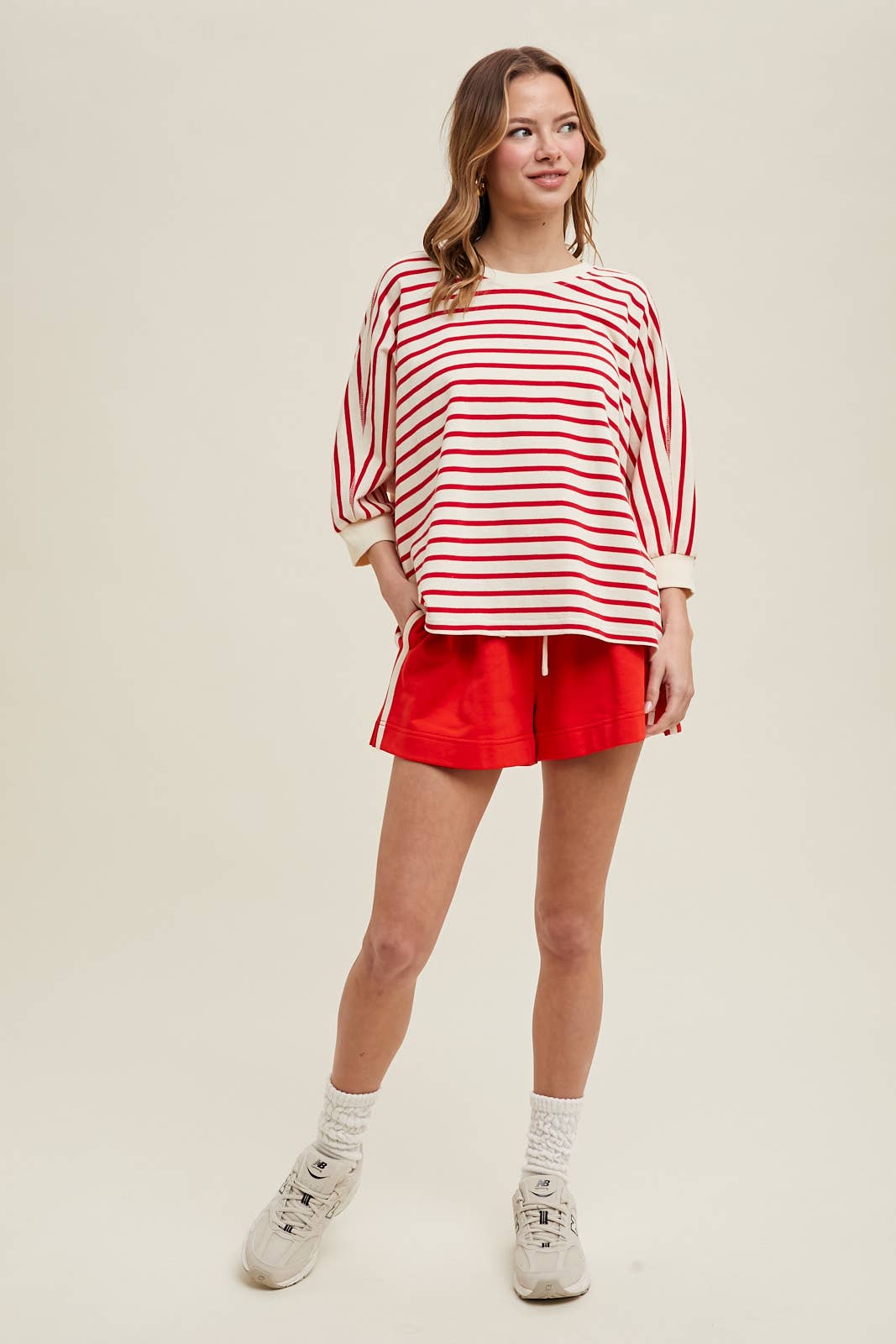 Step up your style game with these adorable Blakely Striped Terry Shorts! Featuring a comfy elastic waistband with a drawstring and handy side pockets, they’re the perfect blend of trendy and cozy for any casual day.