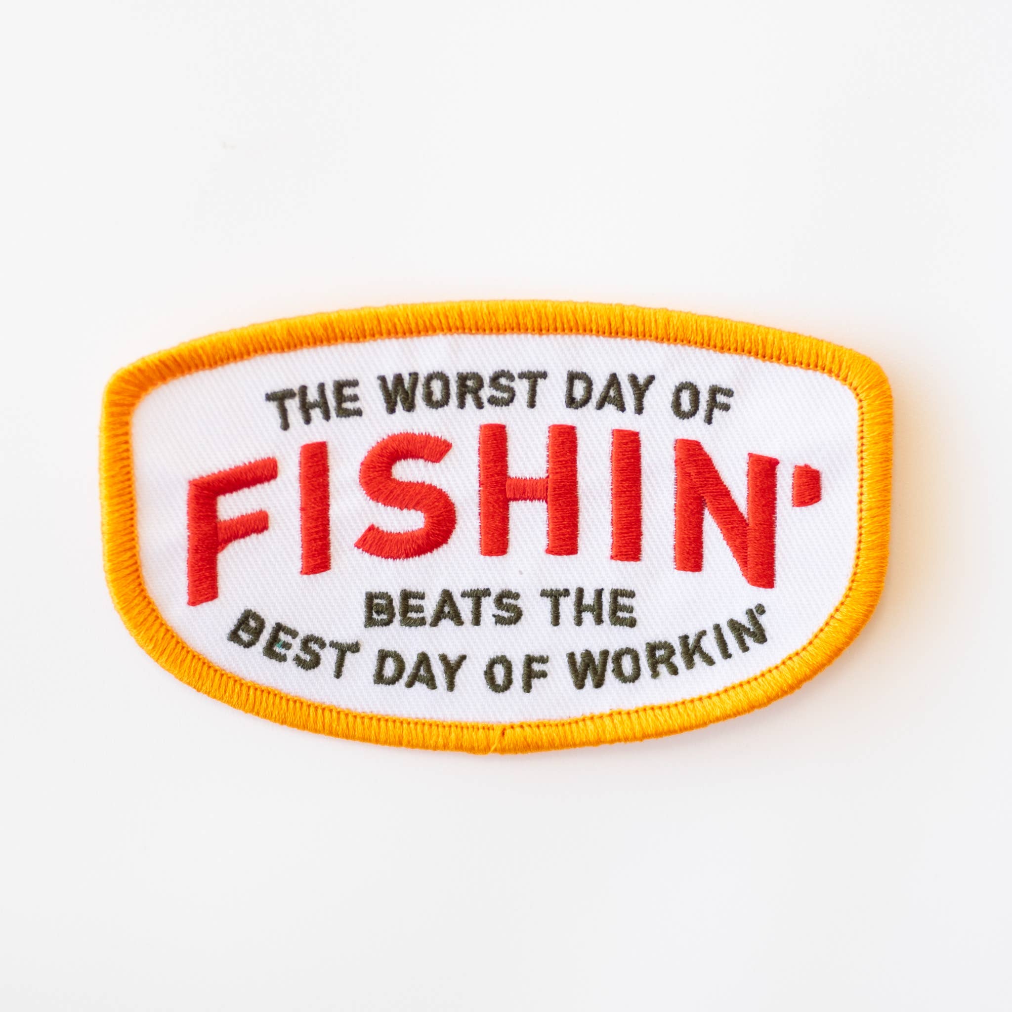 Introducing our Fishin' Beats Workin' patch, a vibrant 2x3.5-inch embroidered design that celebrates the joy of a laid-back day by the water. With its bold red, green, white, and yellow color palette, this patch showcases the phrase, "The worst day of fishin' beats the best day of workin'," making it the perfect addition to your favorite fishing hat, jacket, or gear bag. A must-have for every angler who knows the value of a good catch—or just a peaceful day casting a line.