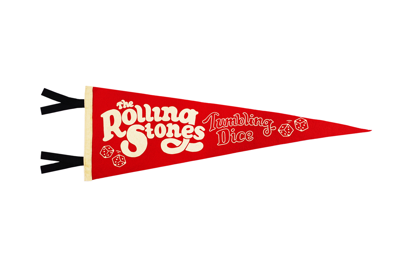 Illustrated by Atlanta-based artist Taylor Rushing, the Tumbling Dice Rolling Stones pennant captures the energy and excitement of the iconic song. After all, it's got tumbling dice! Its vibrant design and impeccable craftsmanship make it a perfect addition to any space, adding a touch of rock-and-roll style to your decor. Officially licensed and made in the USA.