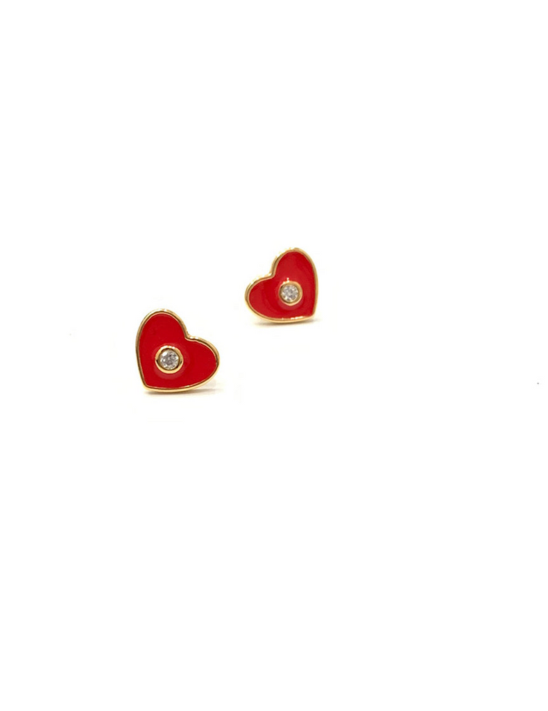 Lil Amora heart stud earrings with single high quality CZ accent, Gold, Red