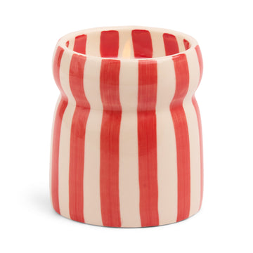Transport yourself to the world's most beautiful beaches with the Cabana collection, each designed to evoke the soothing, transformative scents of coastal destinations. These hand painted candles inspired by striped umbrellas are perfectly sized and feature a unique pinched form. After the candle has burned, the food-safe ceramic vessel can be repurposed for your own culinary creations or as a charming decorative piece!