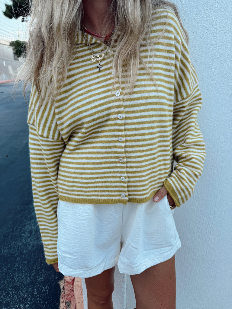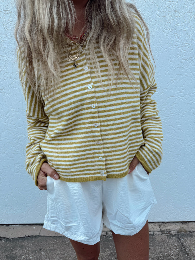 Get ready to elevate your style with this must-have Leighton Striped Cardigan! Not only will you look super stylish, but you'll also be incredibly comfy in this trendy and cute piece. Trust us, you won't want to take it off!