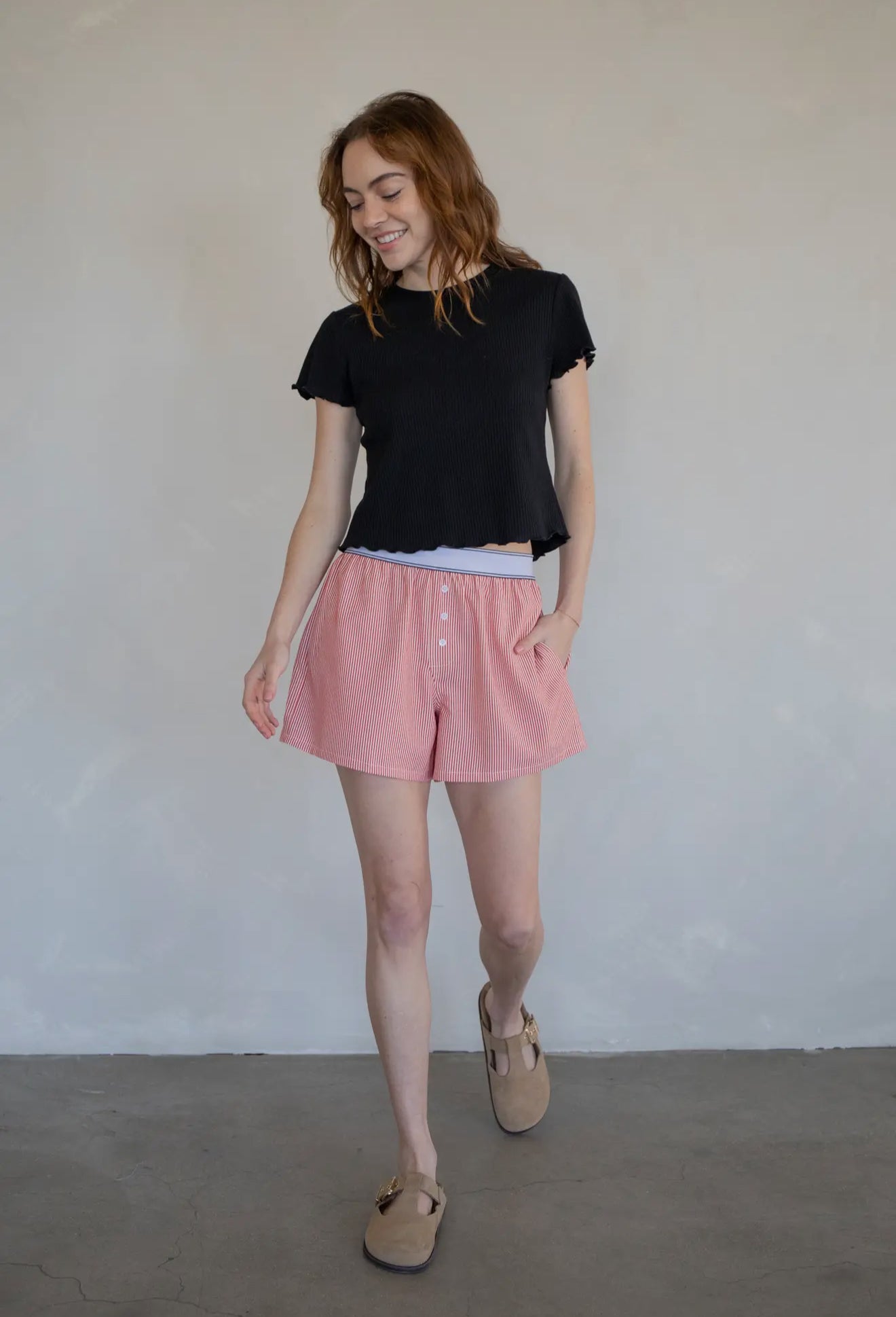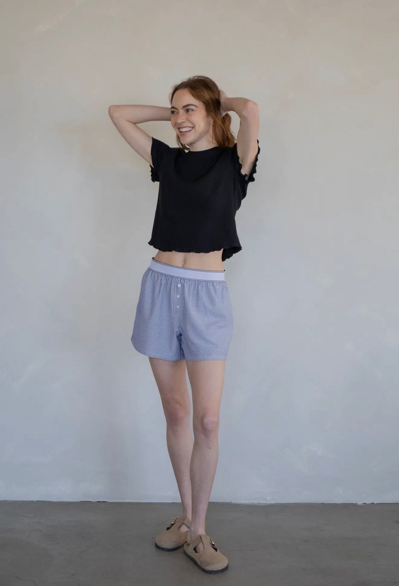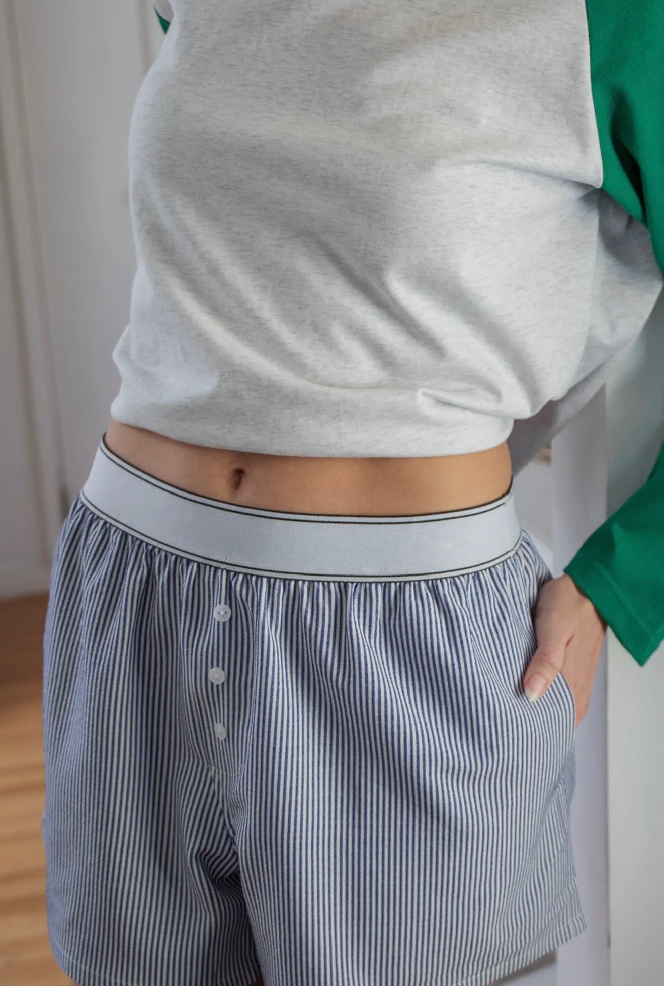Elevate your fashion game with these must-have, stylish, and comfy Sofia Striped Boxer Shorts! Stay trendy and cute while lounging in these playful shorts!