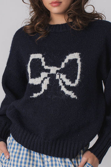 Take your style to new heights with this must-have Sophie Bow Crewneck Sweater. You'll be elevated in both comfort and trendiness with this cute and cozy piece.